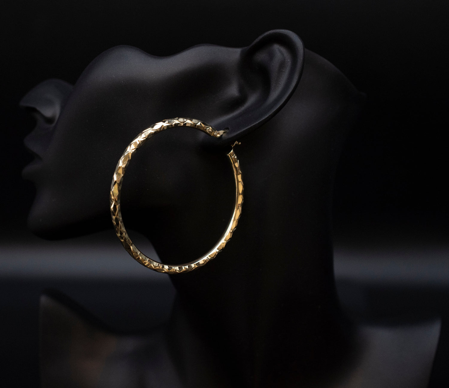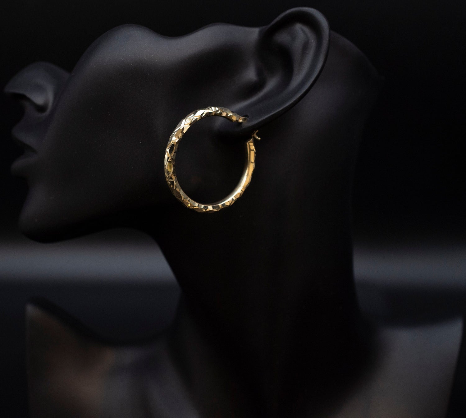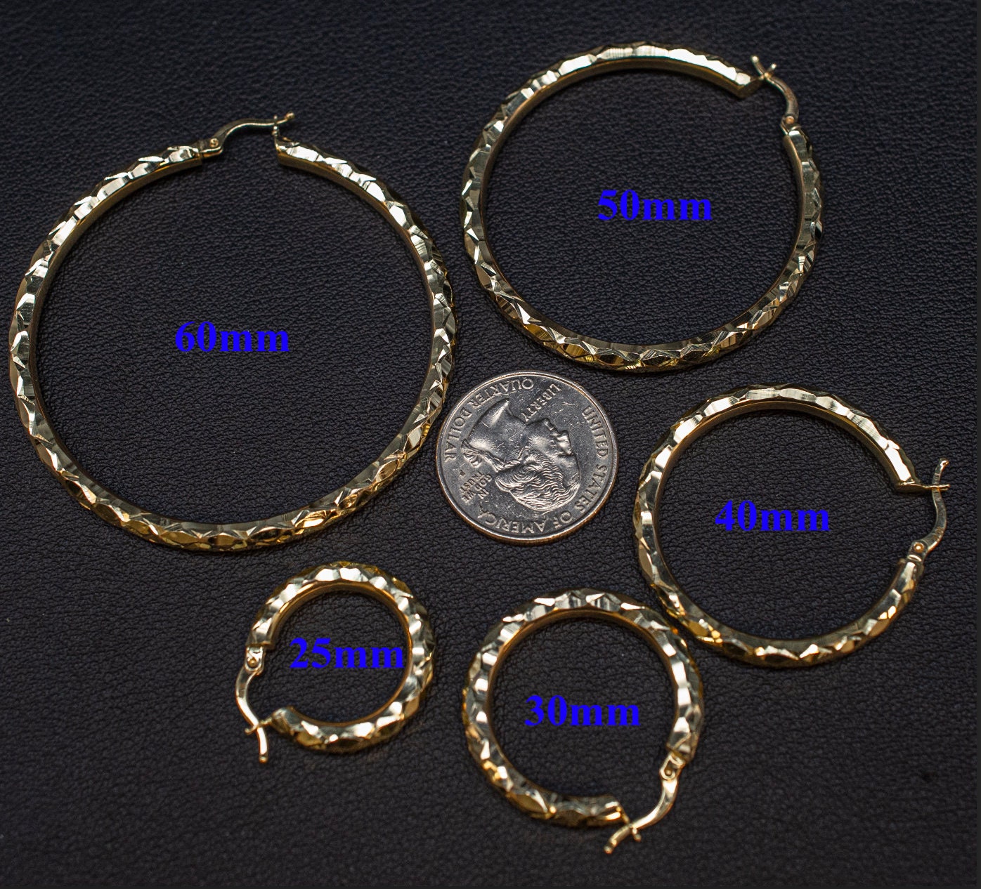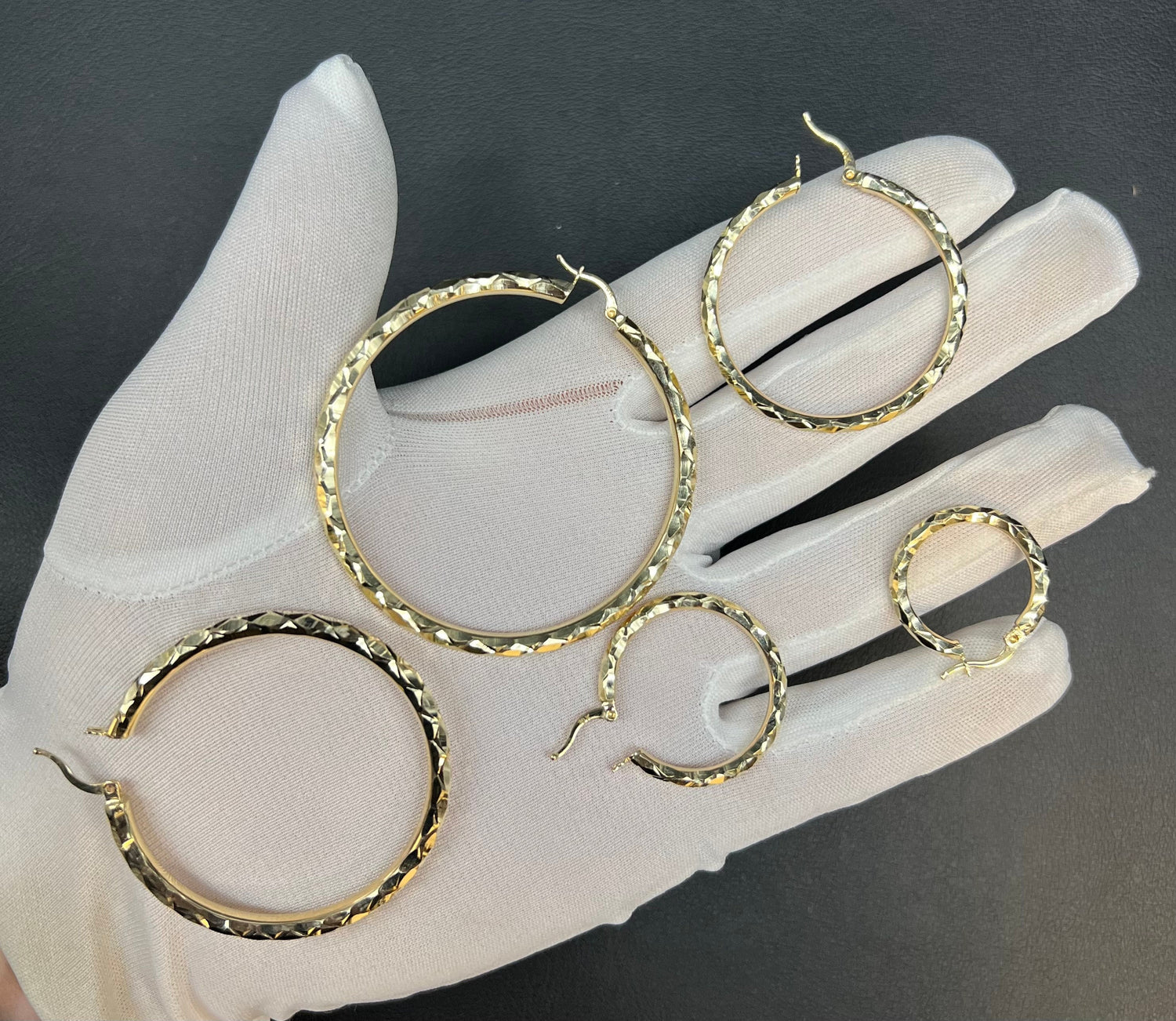 10k Real Yellow Gold Diamond Cut Hoop Earrings, 3mm, 4mm Thickness, Shinny Gold Hoop Earrings,Mother's Day Gift