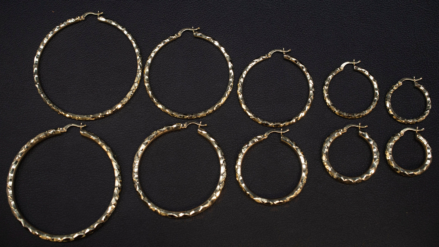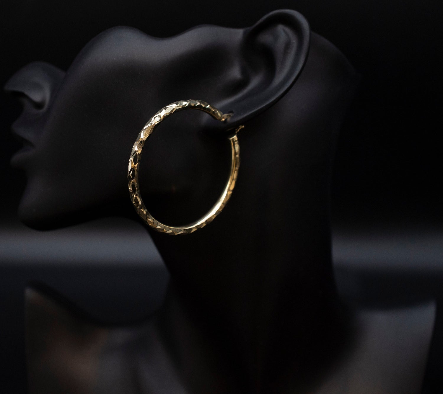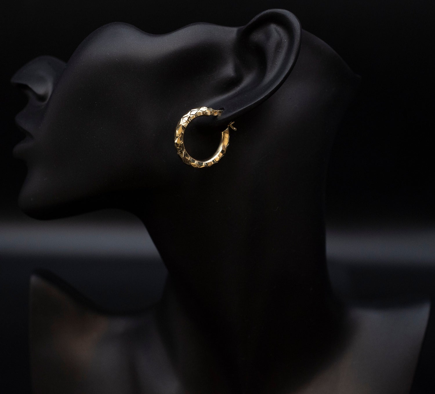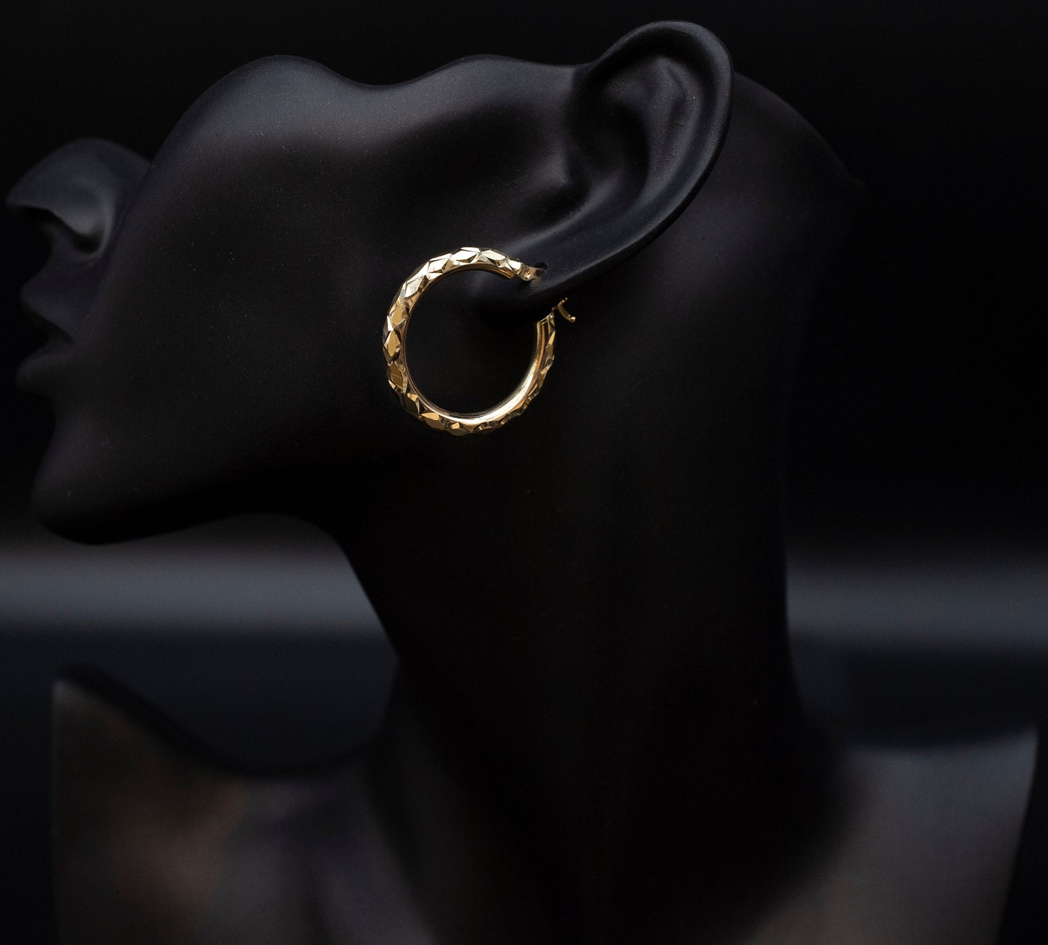 10k Real Yellow Gold Diamond Cut Hoop Earrings, 3mm, 4mm Thickness, Shinny Gold Hoop Earrings,Mother's Day Gift