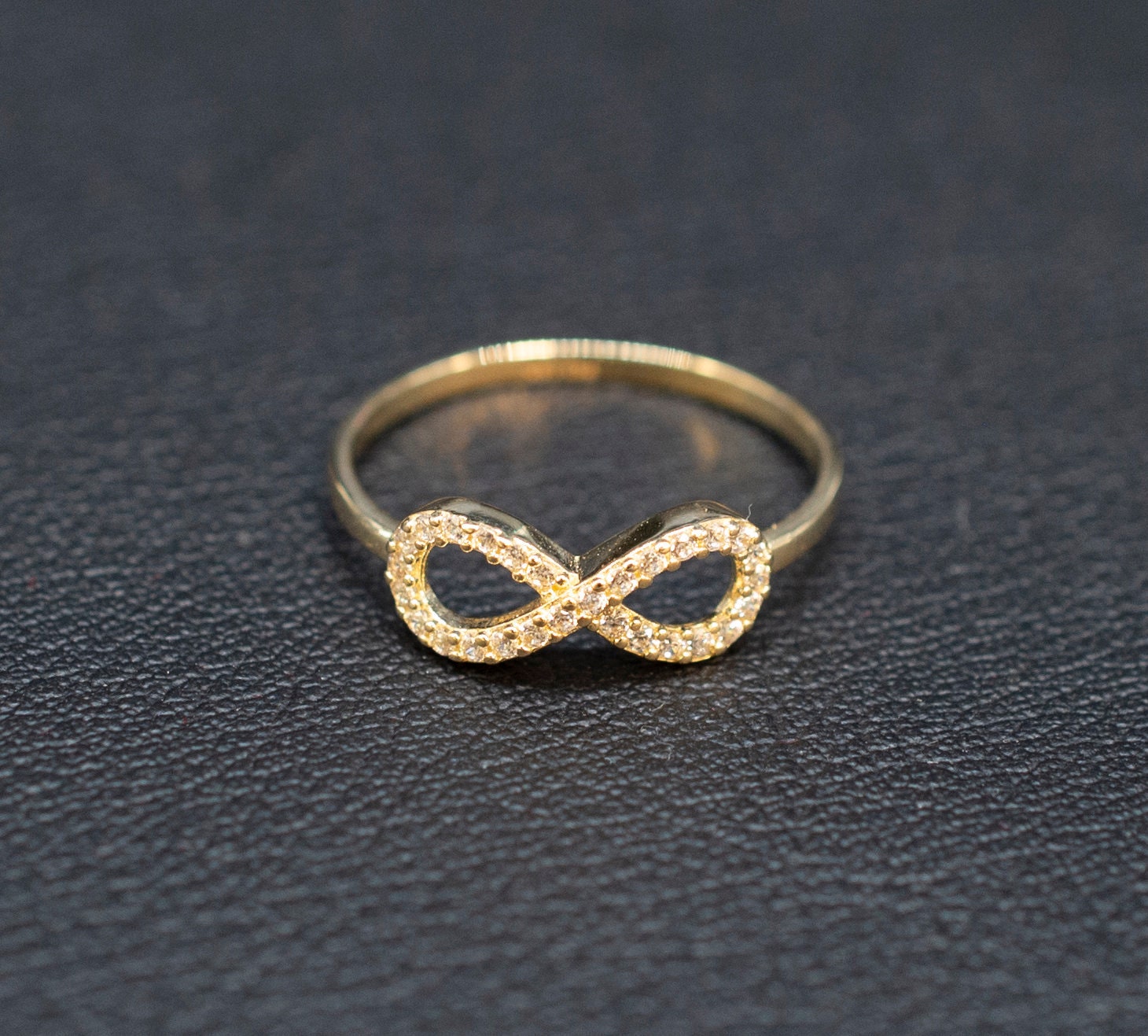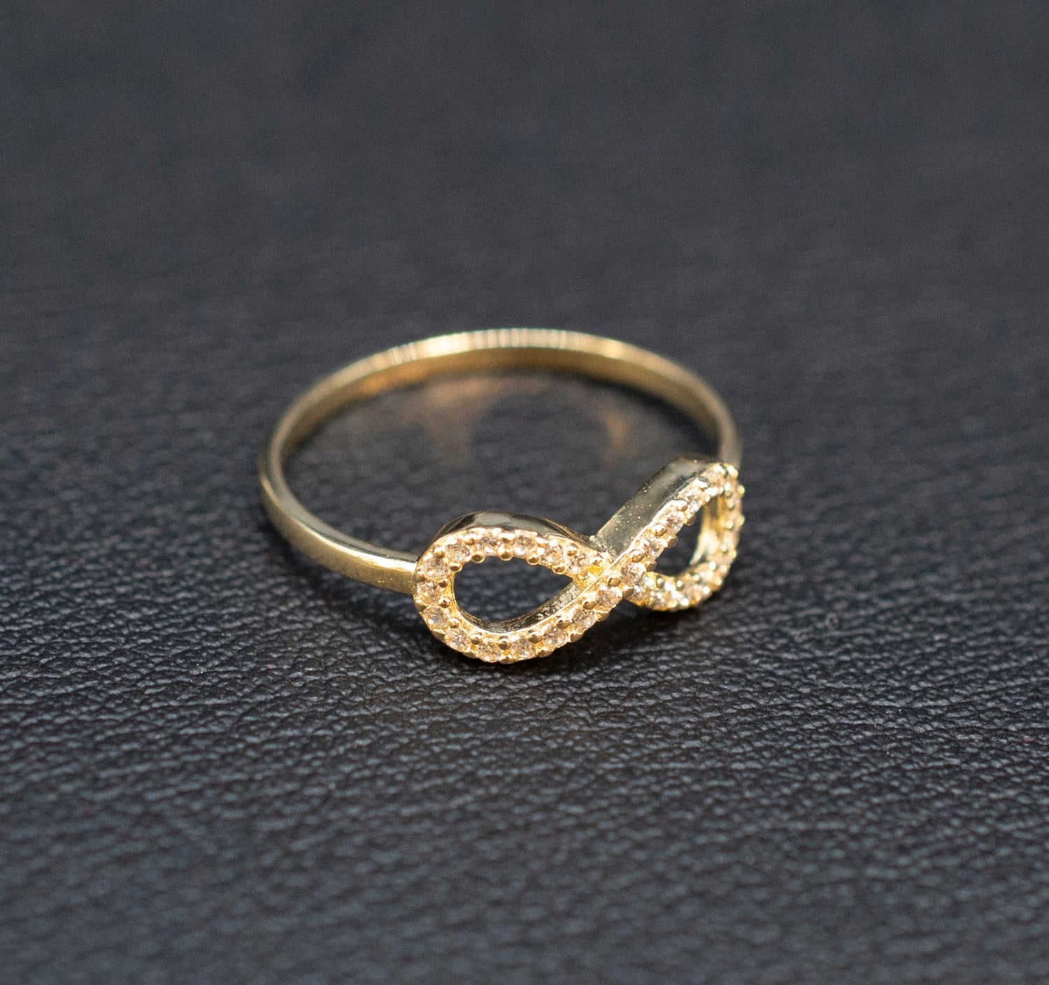 10k Real Solid Yellow Gold Infinity Ring, 10k Solid Gold Women Dainty Ring, Infinity Symbol Gemstone Gold Ring for Women, Gift, Gold Ring