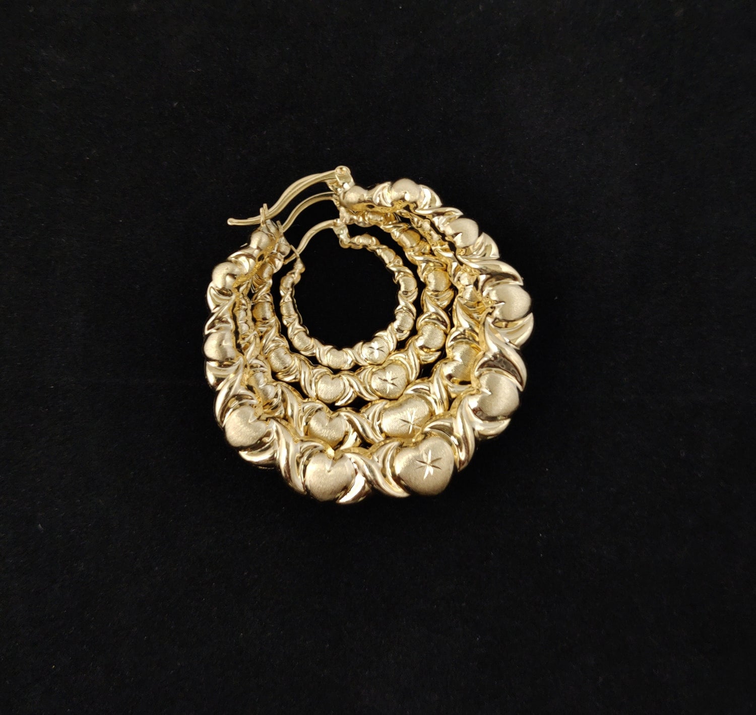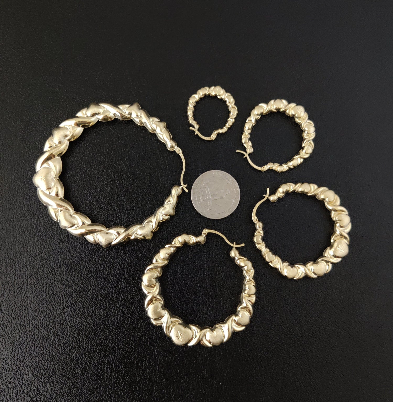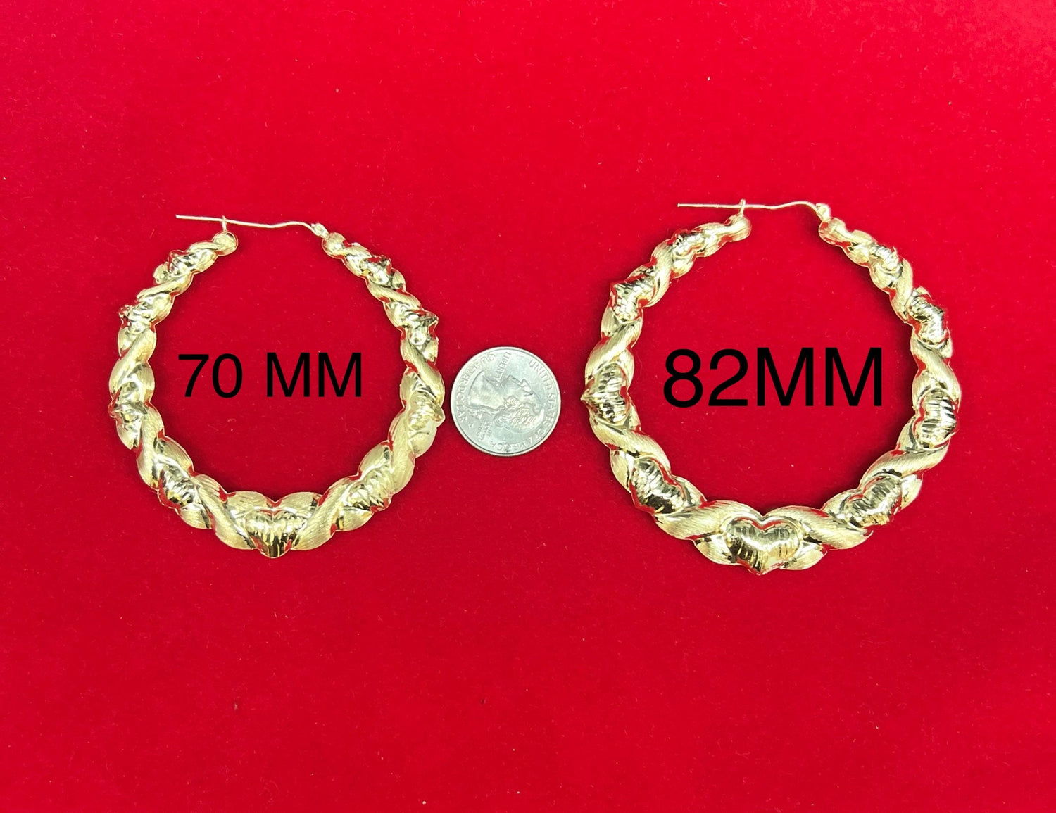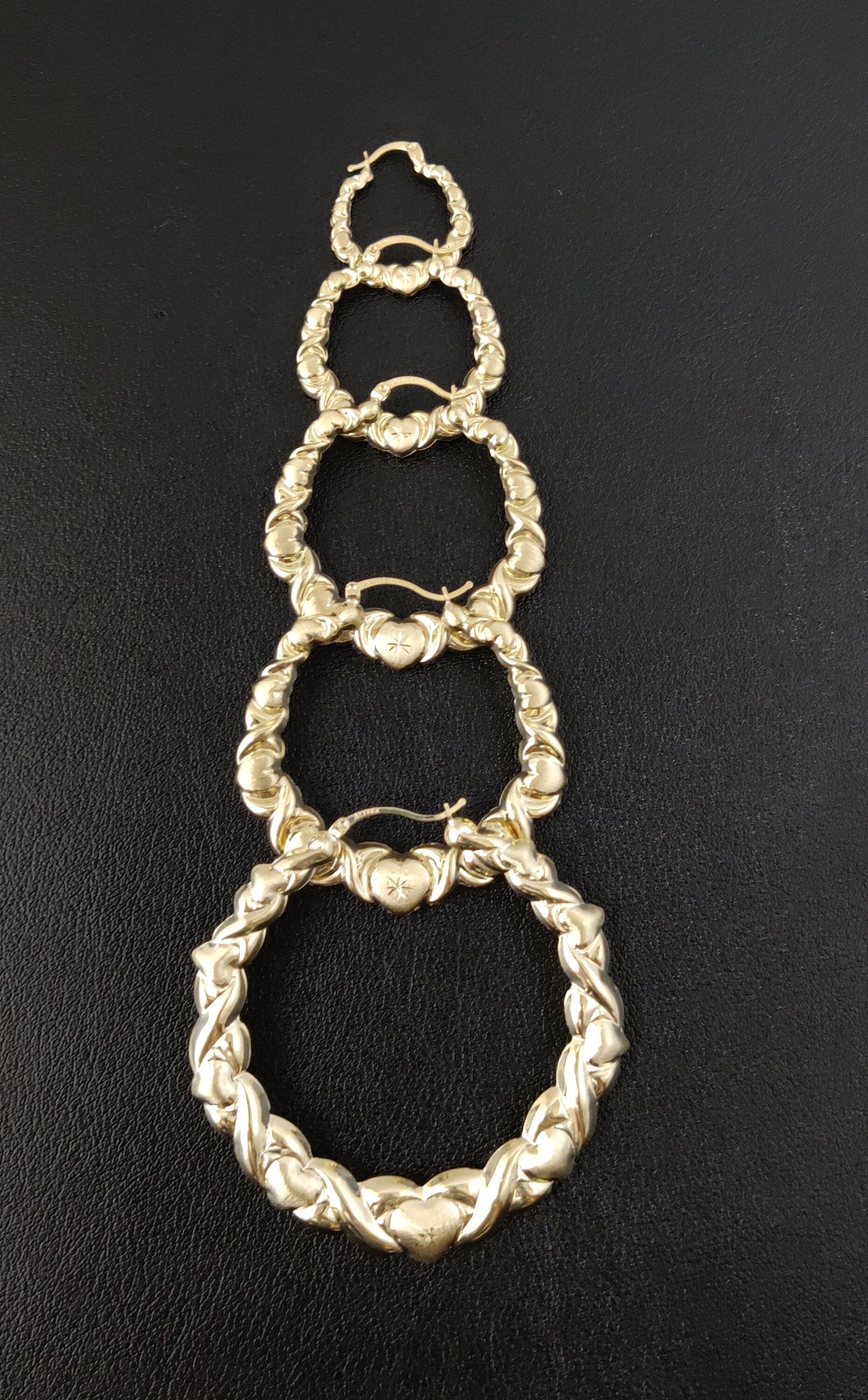 10k Real Solid Yellow Gold Textured Heart Hoop Earrings,High Quality,25mm-82mm Gold Hoop Earrings,Women Earrings