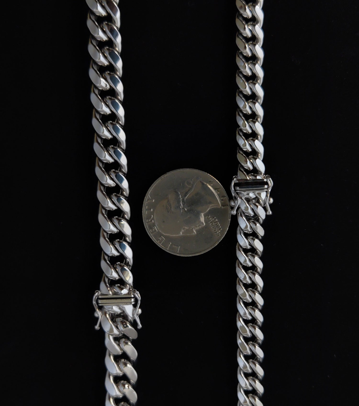 10k Real White Gold Miami Cuban Link Chain Necklace,7.5mm and 9.4mm 10K White Gold, Man Gold Chain,Ladies Gold Chain, White Miami Cuban