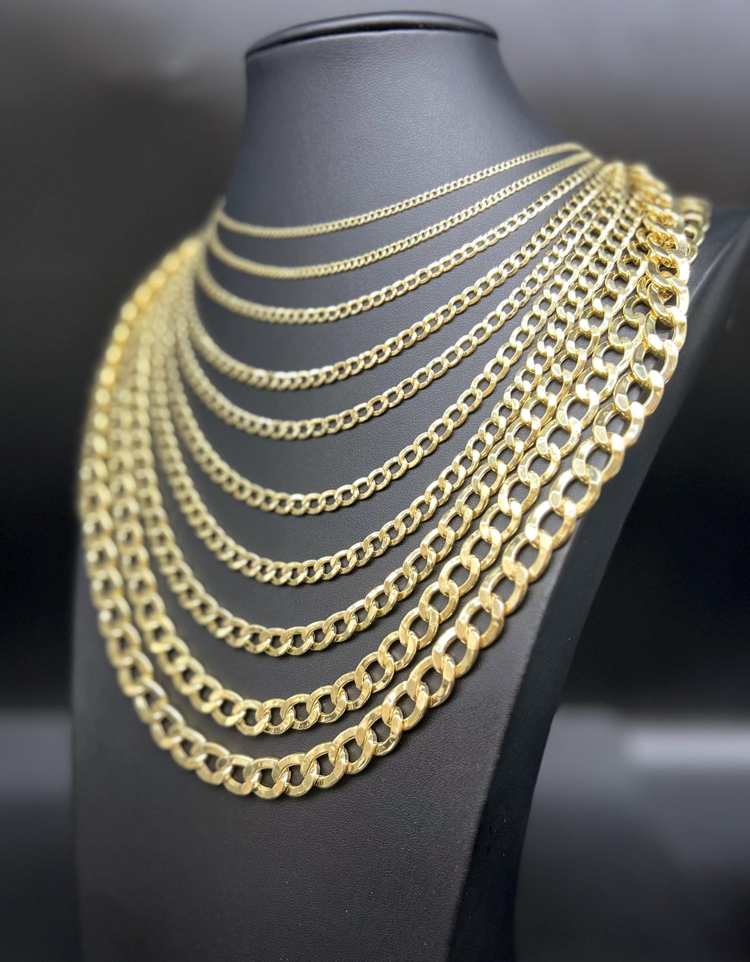 10K Real Yellow Gold Cuban Curb Link Chain, 10k 2.2mm - 11mm Cuban Curb Chain,10k Real Gold Chain Men and Women, 10k Gold Chain Necklace