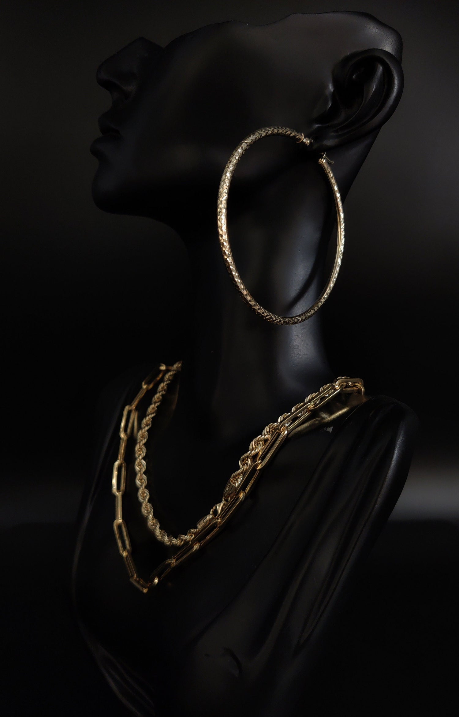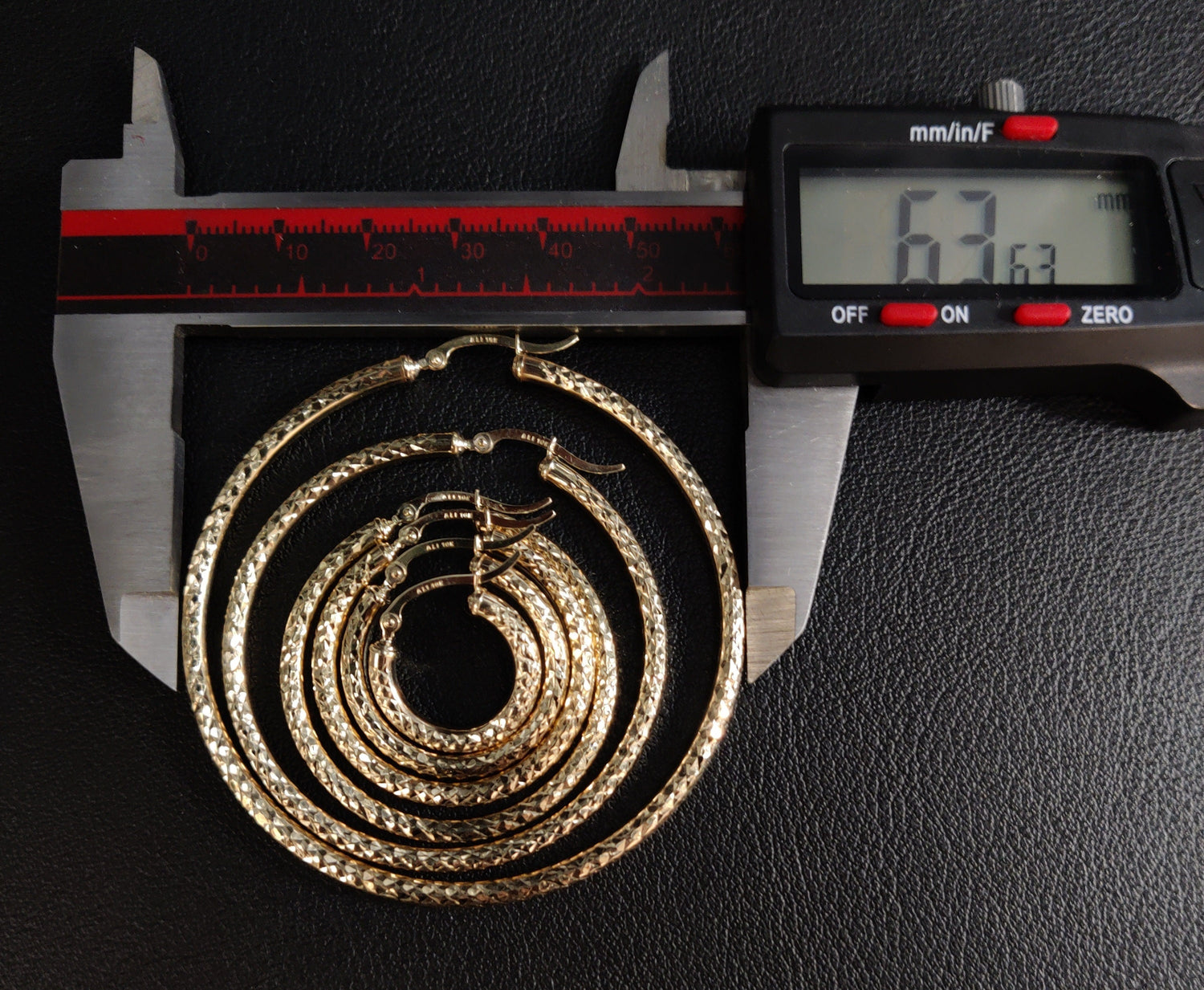 10k Real Yellow Gold Diamond Cut Hoop Earrings, 3mm Thickness, Shinny Gold Hoop Earrings,Mother's Day Gift
