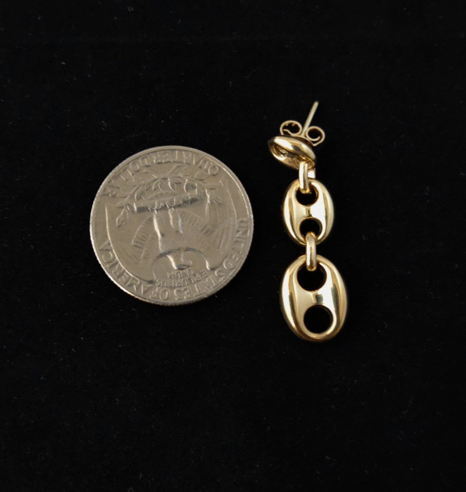 10k Real Yellow Gold Puffed Mariner Earrings, Dangle Earrings, High Quality, Real Gold Earrings,Women Earrings