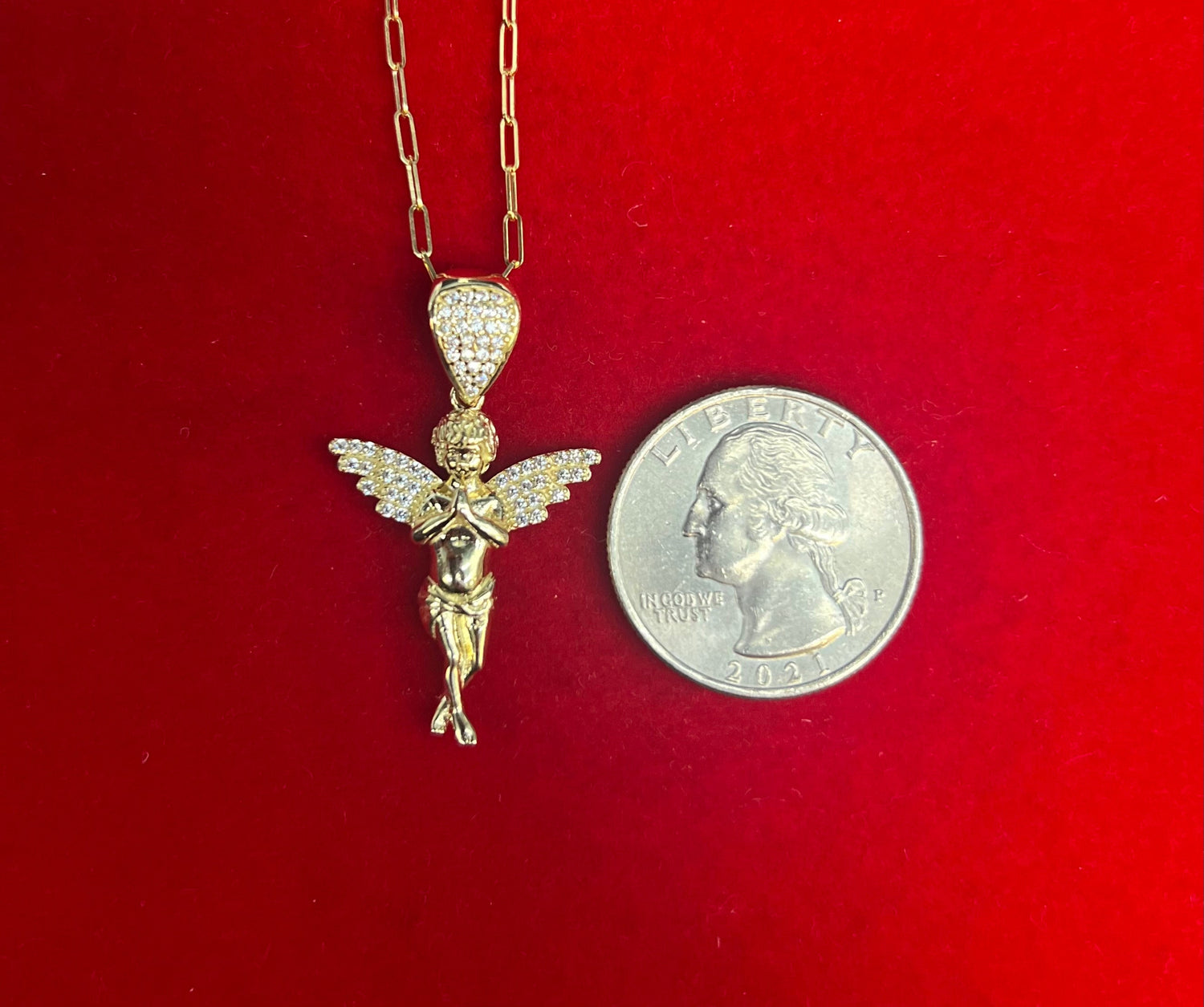 Weight: The angel pendant has an average weight of 3.7 grams, providing a delicate yet substantial presence.