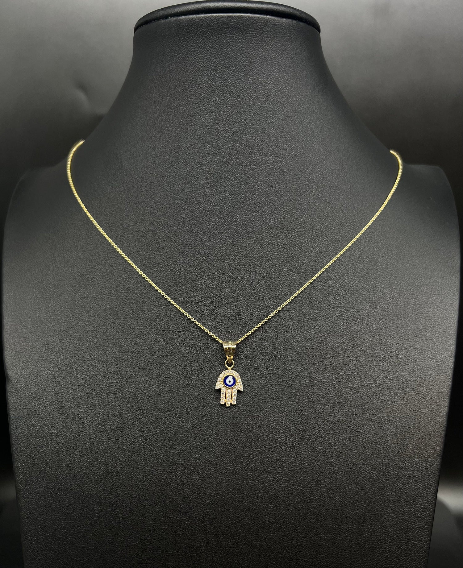 #GoldEvilEyeNecklace #14KGoldCharm #BOSPHORUSGOLD #RealGoldChain #ZirconiaStones #CableChainNecklace #ProtectiveJewelry #FineGoldCraftsmanship #GenuineGoldAccessories #EvilEyeCharmNecklace #HamsaHandPendant #FatimaHandCharm #MadeInTurkey #ItalyMadeChain