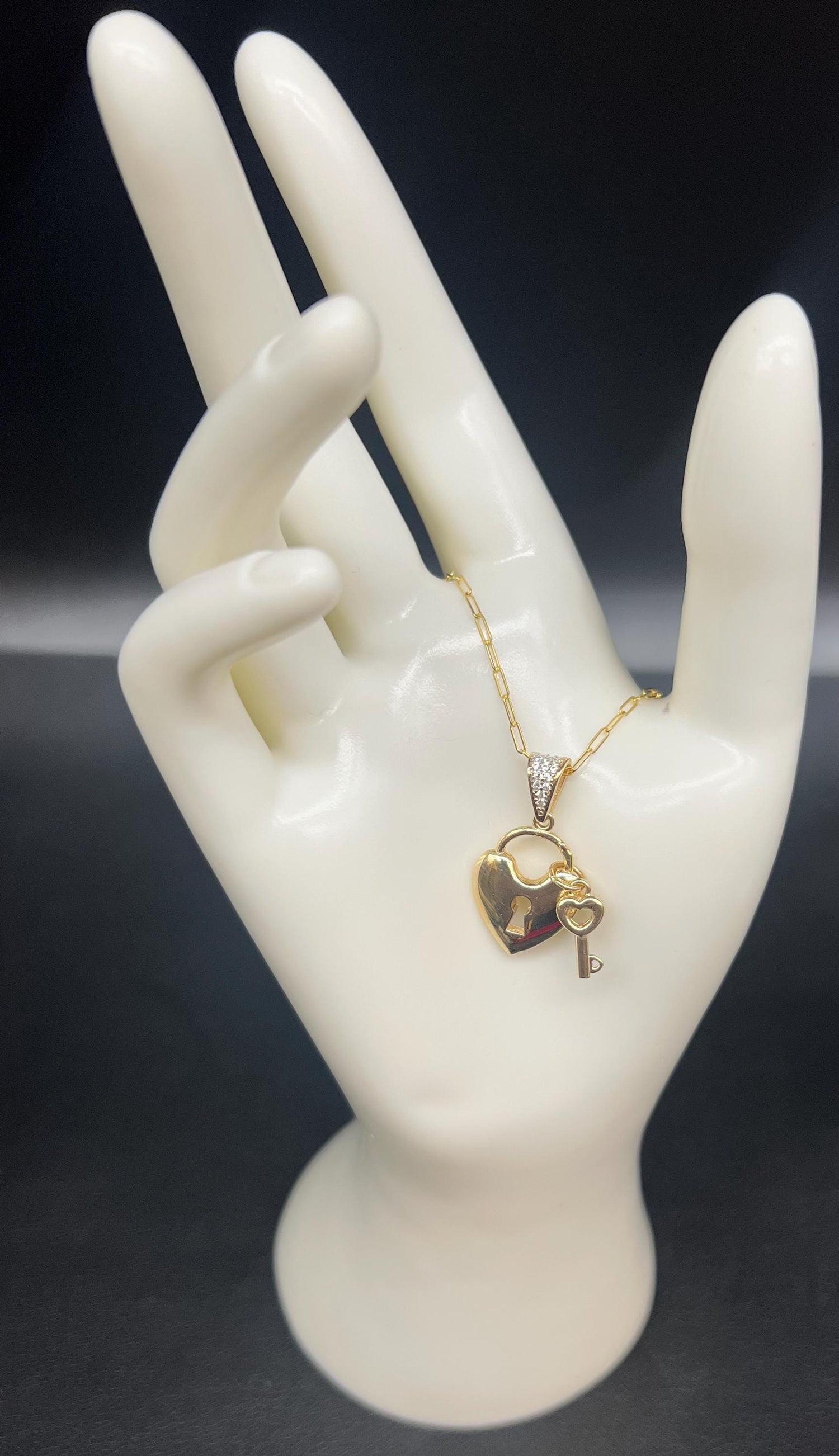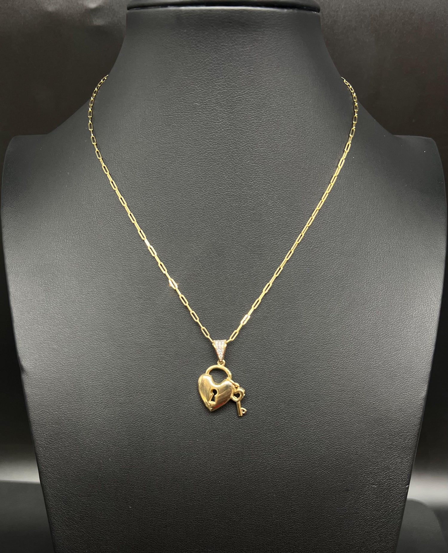 14k Real Gold Heart Pendant Necklace, with 1.5 mm Solid Paperclips Chain Necklace ,Gift,14k Gold Charm,Heart Locker charm,Real 14k gold