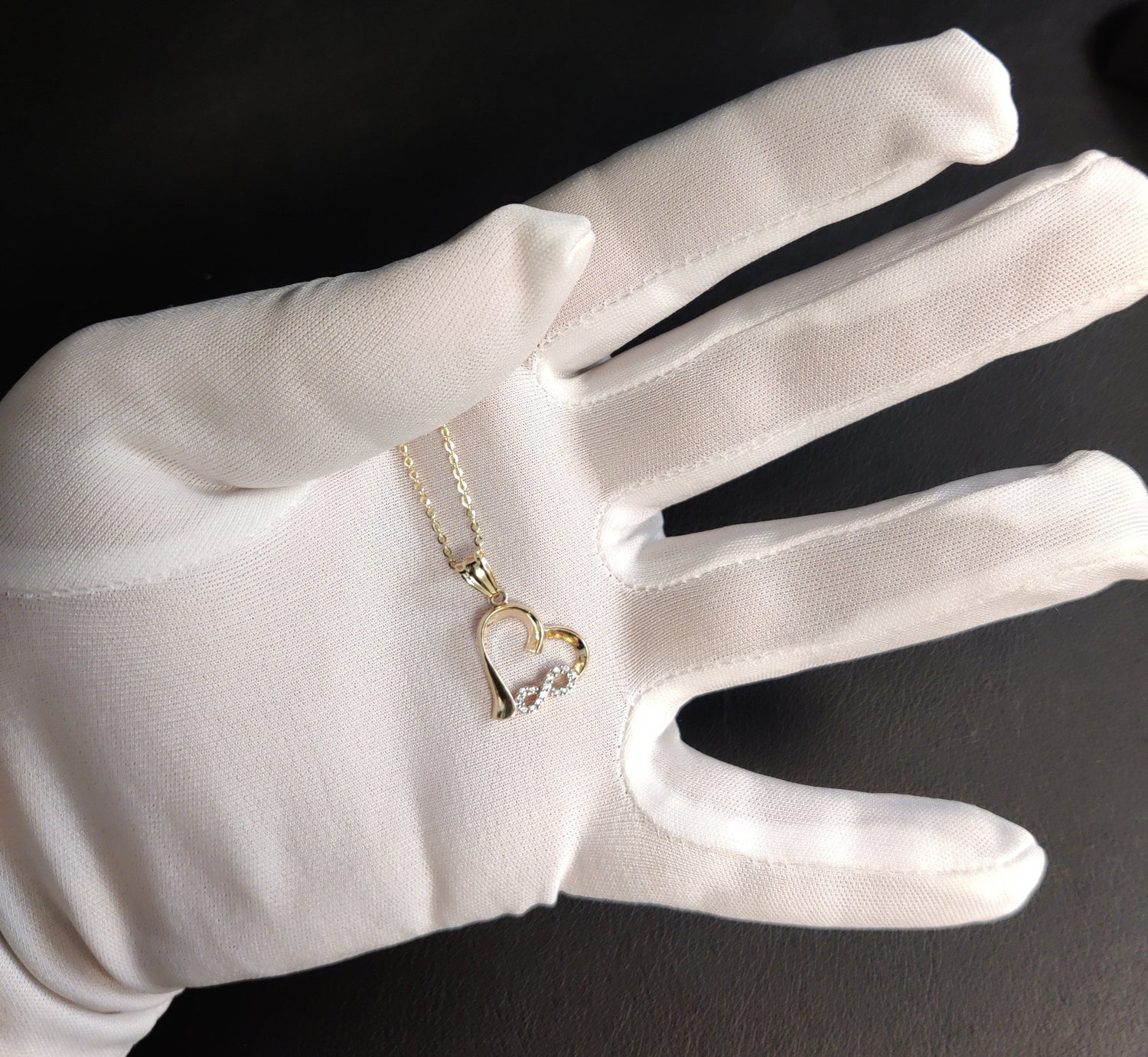 14k Real Gold Infinity Heart Necklace,14K Real SOLID Gold Infinity Heart Charm, 14k Real Gold 1.3mm Cable Chain Necklace