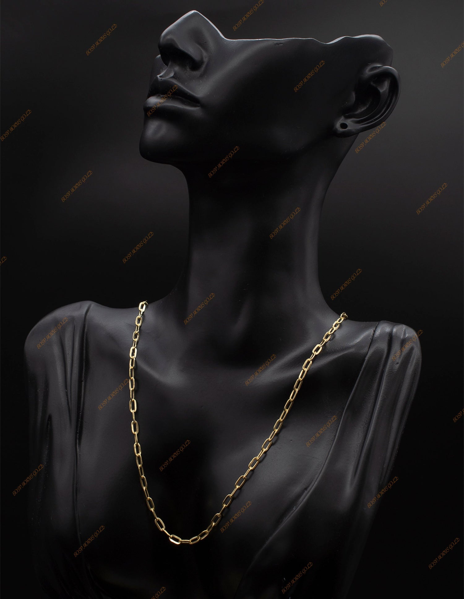 Discover the new trendy dainty and delicate elongated rectangle link chain paper clip necklace. This is 14k gold necklace that gives you option for everyday or special occasion wears. It can easy match with your other gold and silver necklace.