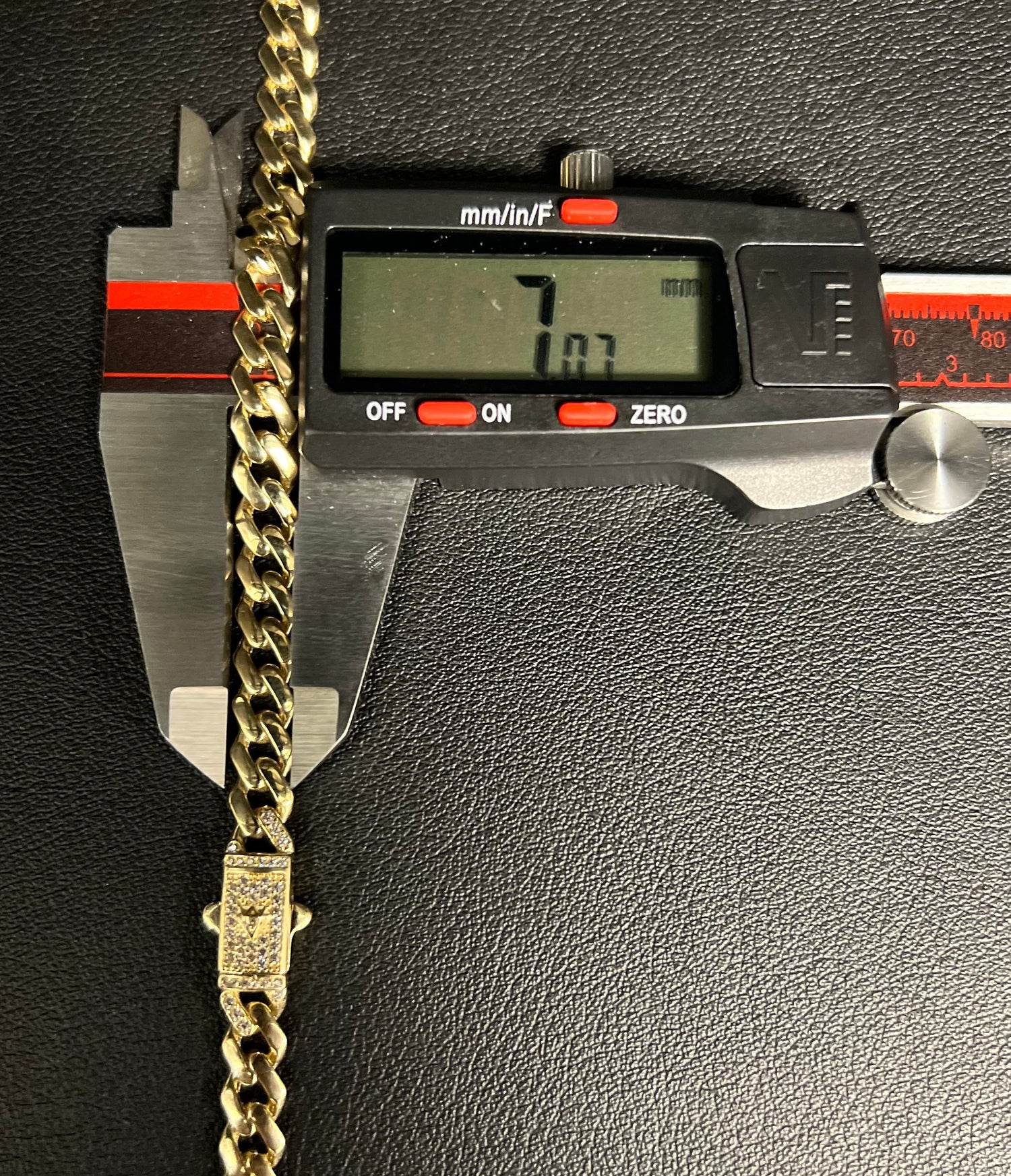 14k Real Gold Miami Cuban Link Chain with Zirconia Box Lock Necklace, 7mm and 9.2mm Real 14K Yellow Gold,Gold Chain, 14k Gold Chain