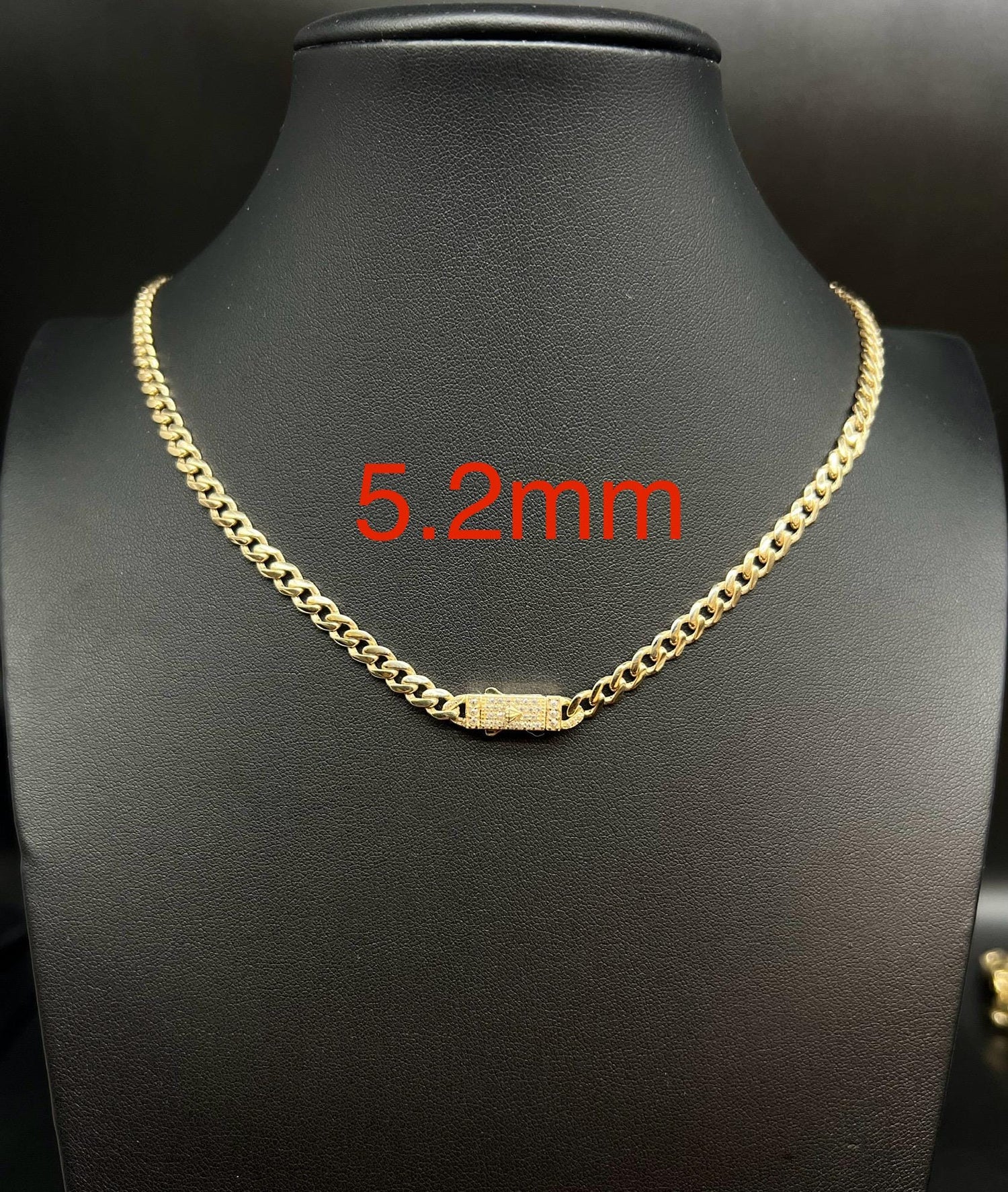 14k Real Gold Miami Cuban Link Chain with Zirconia Box Lock Necklace and Bracelet , 5.2mm - 11mm Real 14K Yellow Gold, 14k Gold Chain