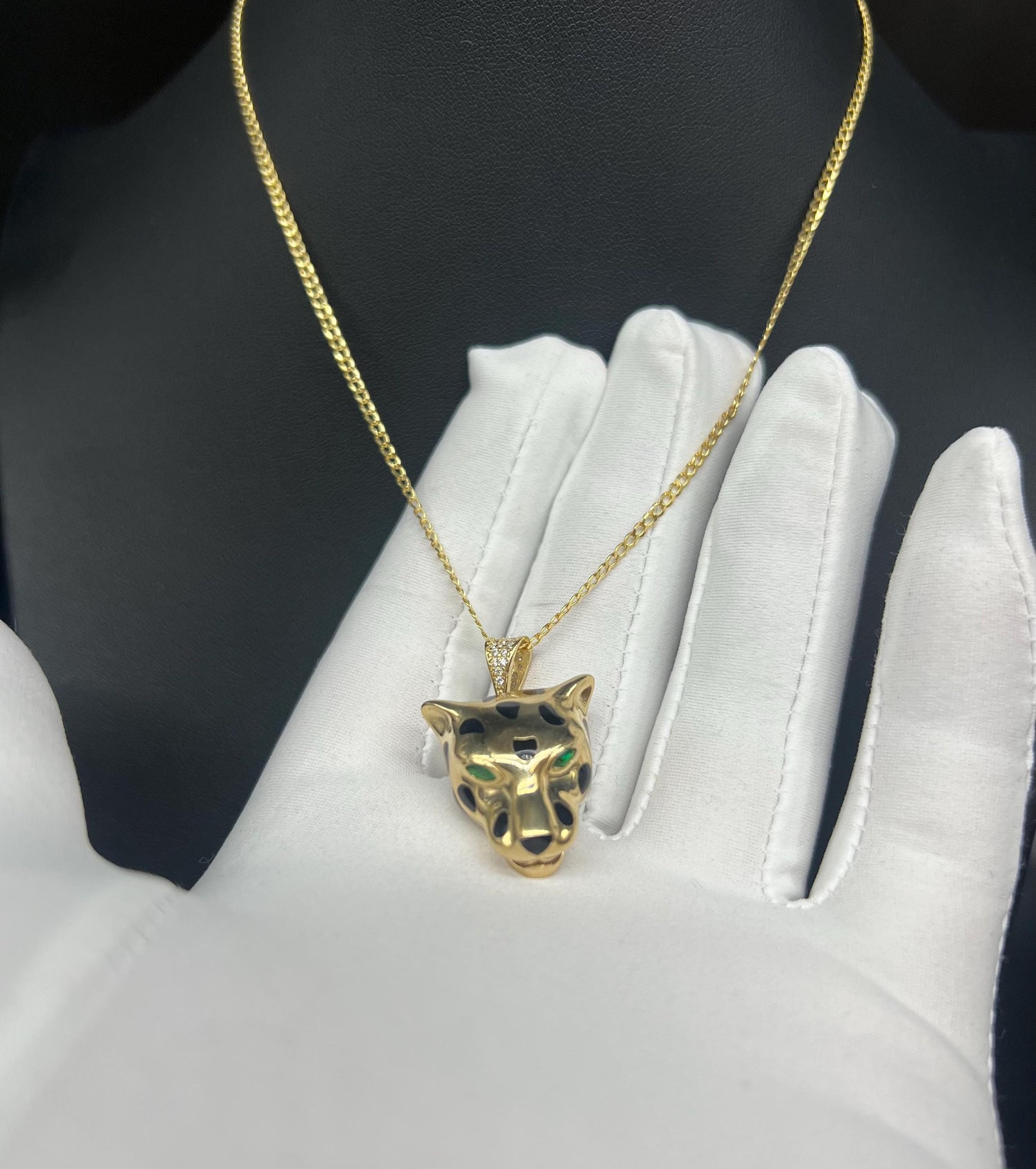 14k Real Gold Panther Pendant Necklace, with 14k 2mm Solid cuban curb Chain Necklace , Gift, 14k Gold Charm, Panther charm, Real 14k gold