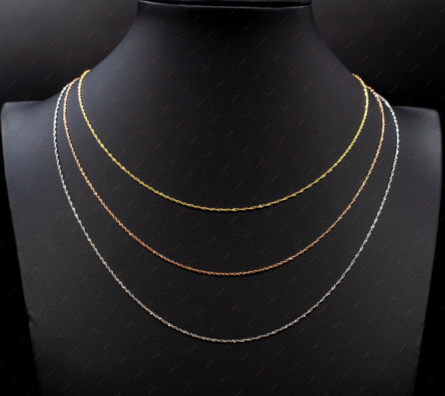 14K Solid Yellow, White, Rose Real Gold Diamond Cut Singapore Chain, 14K Singapore Necklace , 14K 1.1 mm Singapore Chain ,Women Necklace