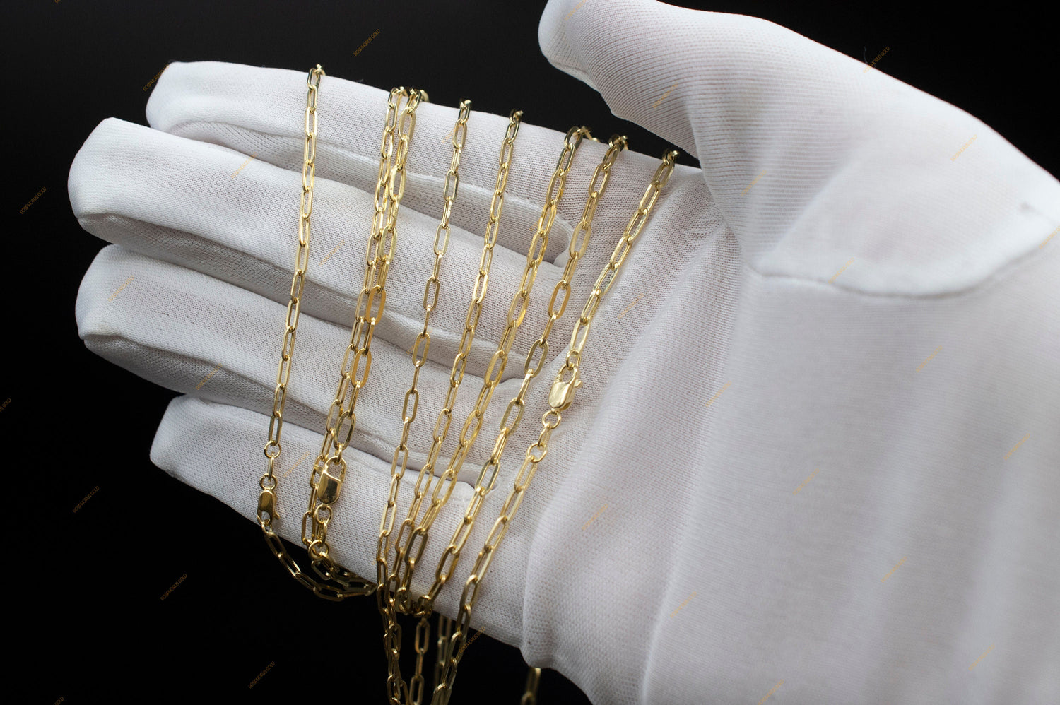 14k Yellow Gold Fancy Paperclip Chain Necklace, Dainty Paperclips Necklace 2.3mm, 2.8mm Women ,Real 14k Yellow Gold women Necklace