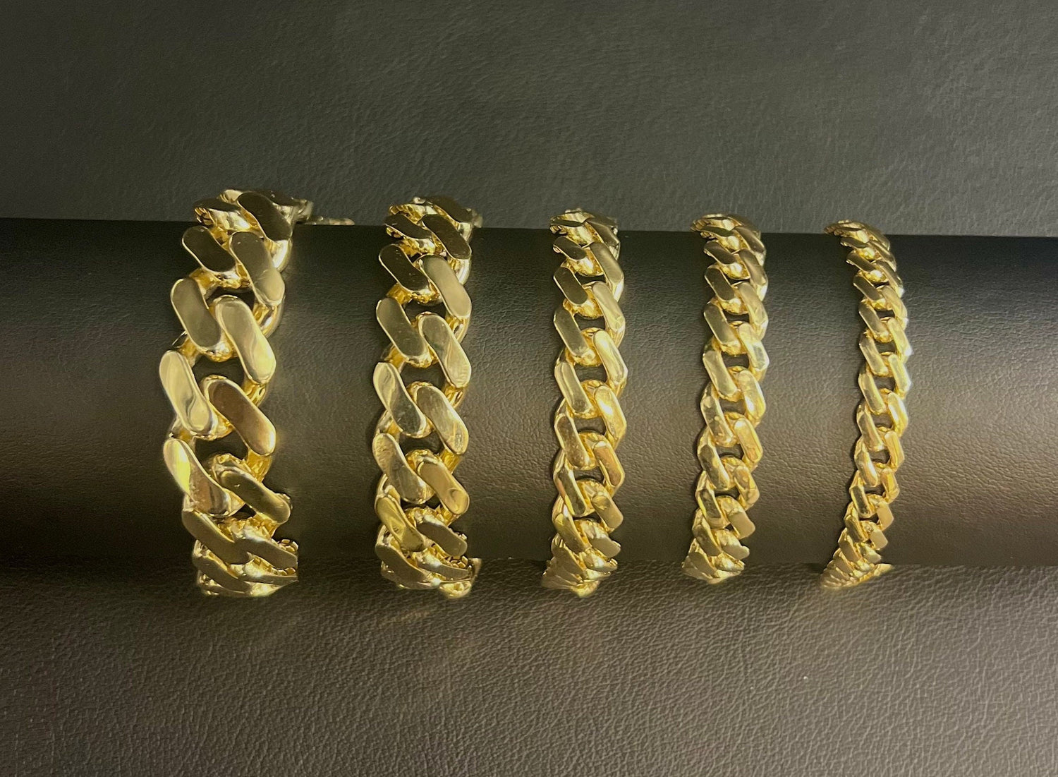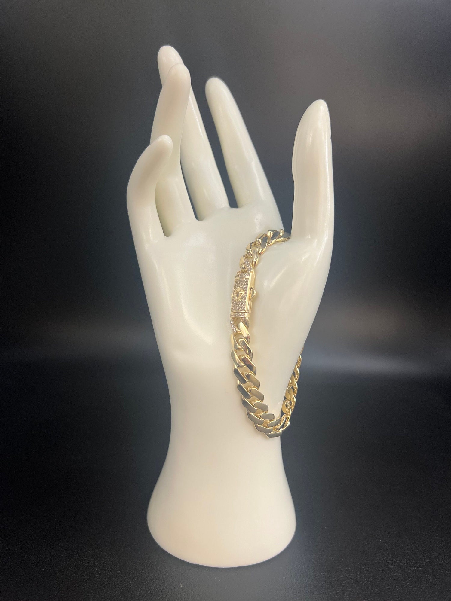 14k Yellow Gold Miami Cuban Chain Bracelet Zirconia Box Lock, 7mm - 15mm Real 14K Yellow Gold,,14k Gold Bracelet, 14k gold Miami cuban