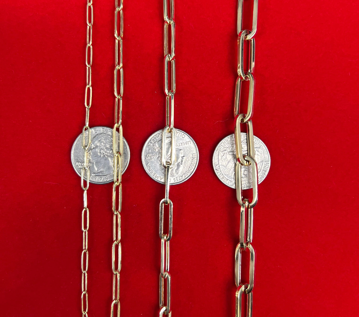 14K Yellow Gold Paperclip Chain Necklace, 14K Real Gold Paperclips Necklace 3mm-9mm, Fancy Women Necklace, Real 14k Yellow Gold