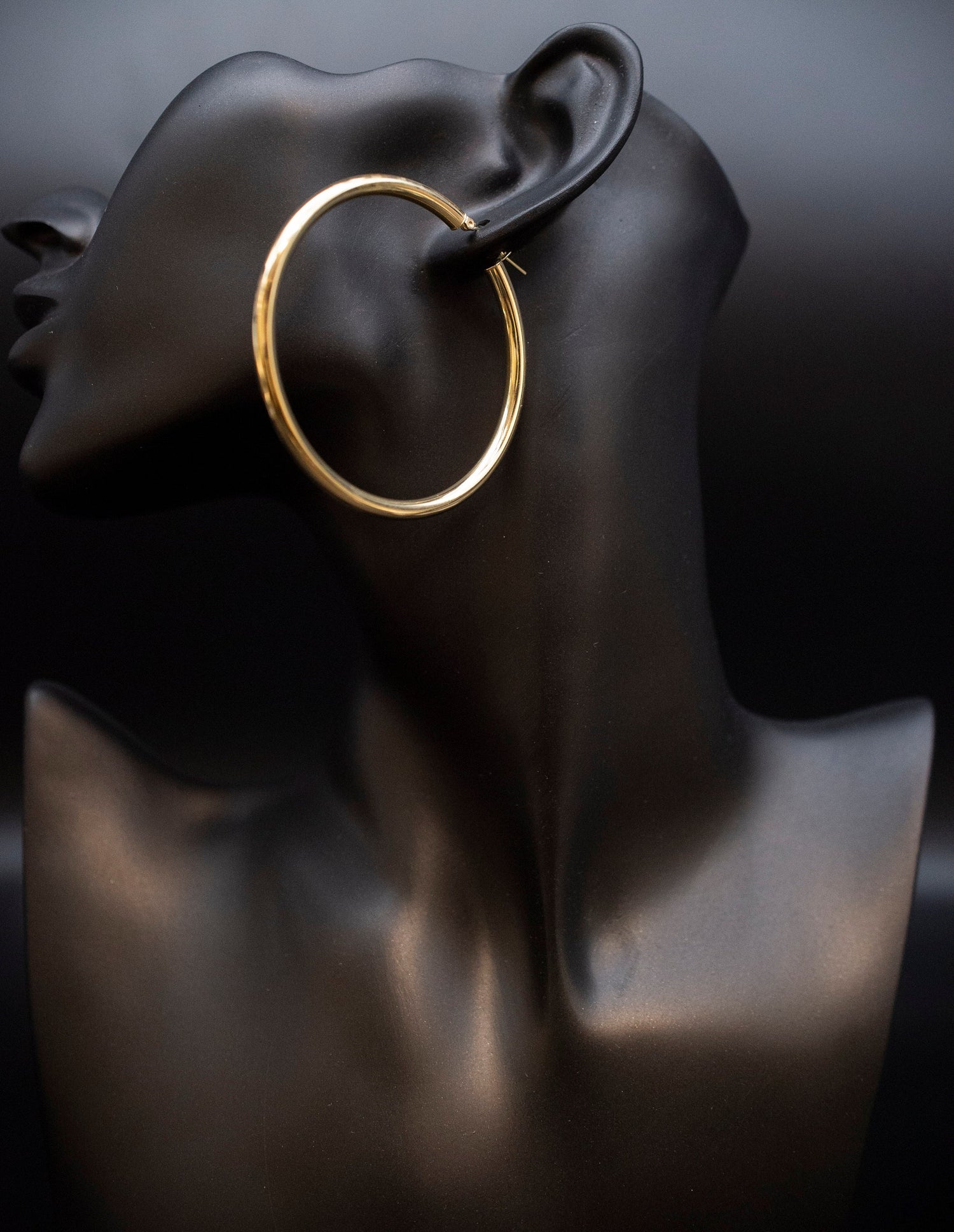 Real 10k Yellow Gold Hoop Earrings 2mm, 3mm, 4mm Thickness, 15mm-70mm Gold Hoop Earrings