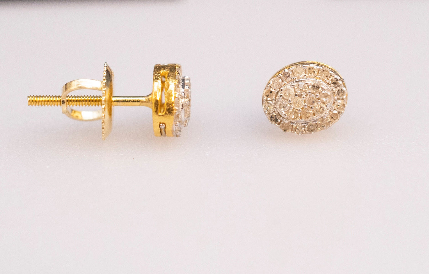 Real Diamond Elliptic Earrings, 14K Gold Diamond Earring , 14K Solid Gold Oval Diamond Earring ,Christmas Special , Diamond Women Earring